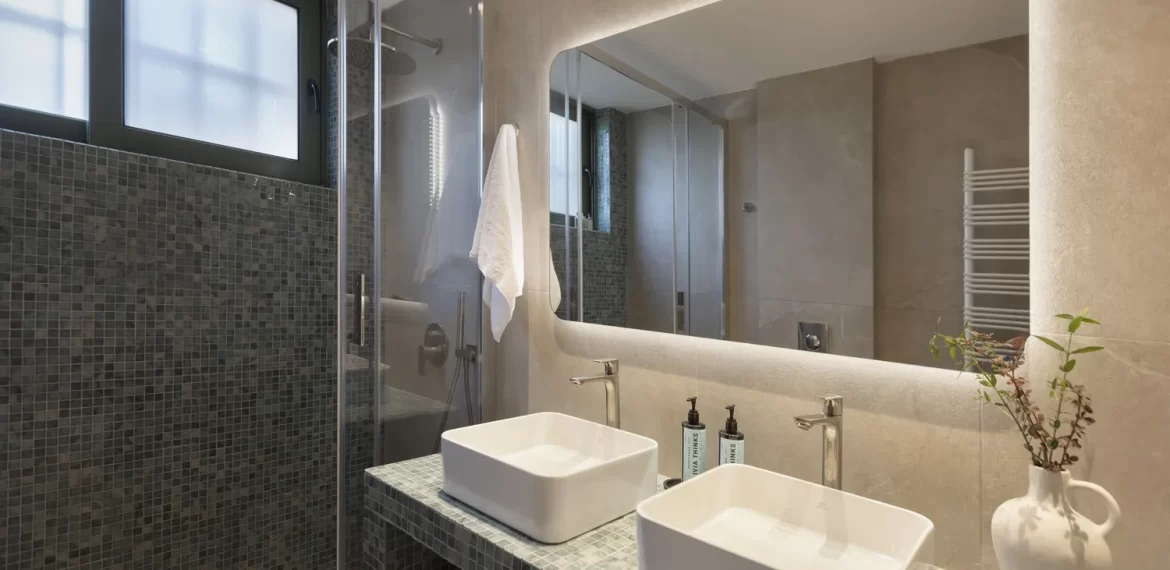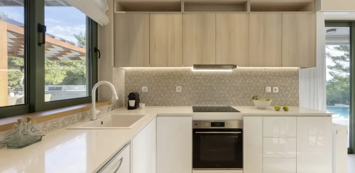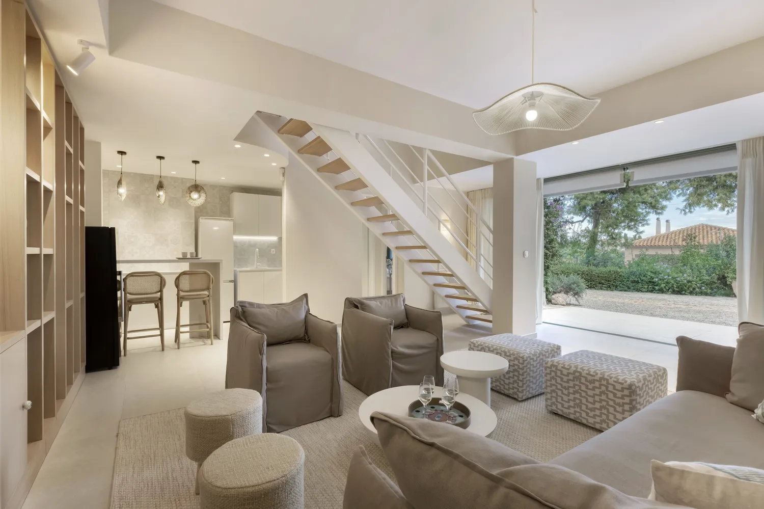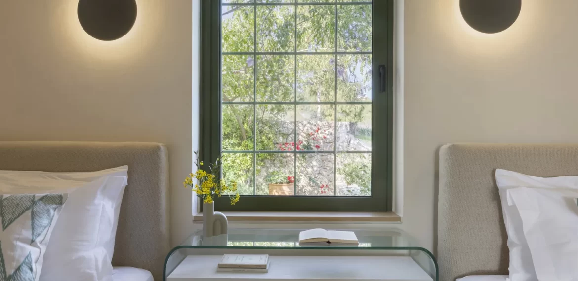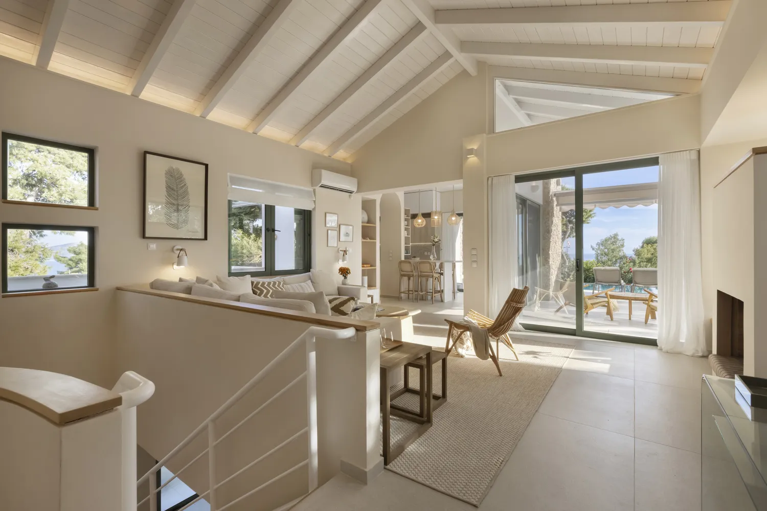The interior spaces are designed to flow harmoniously, blending natural light, refined materials, and soft tones that enhance the villa’s tranquil ambiance. Every detail, furniture, textures, colors, and arrangement has been selected to create a sense of calm, balance, and sophistication. With views opening toward the Aegean Sea on both sides, Villa Levantina embraces the landscape and invites you to unwind in an atmosphere of quiet luxury.