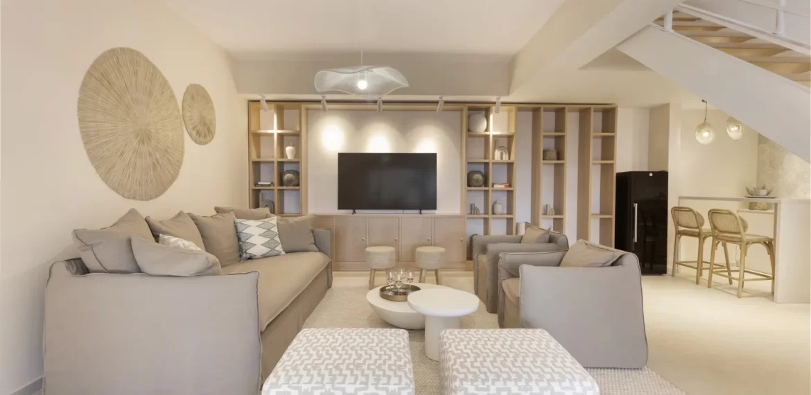 Soft lighting, custom décor, and thoughtfully chosen furnishings give each room its own distinct character while staying true to the villa’s overall aesthetic, warm, refined, and inviting.